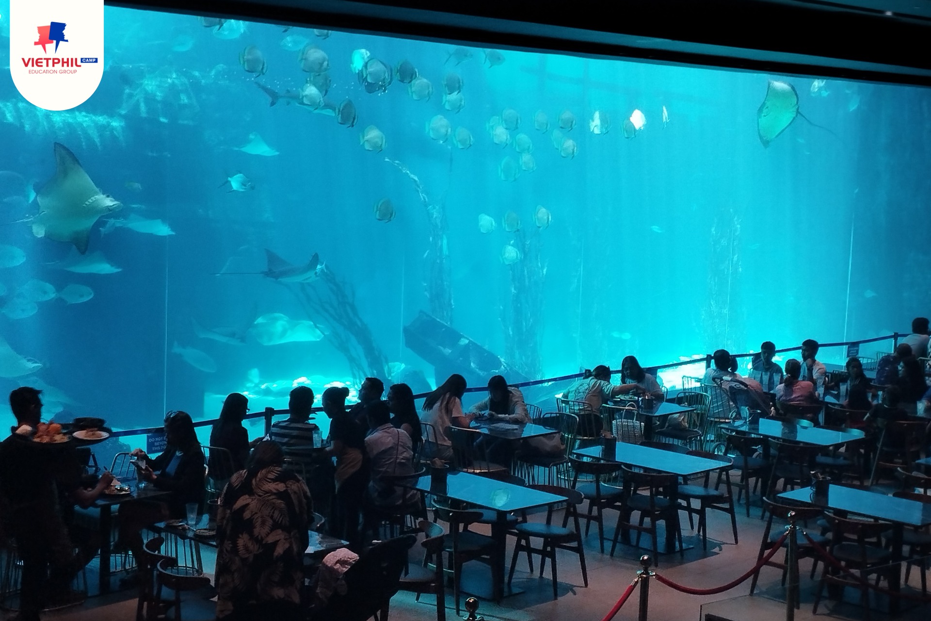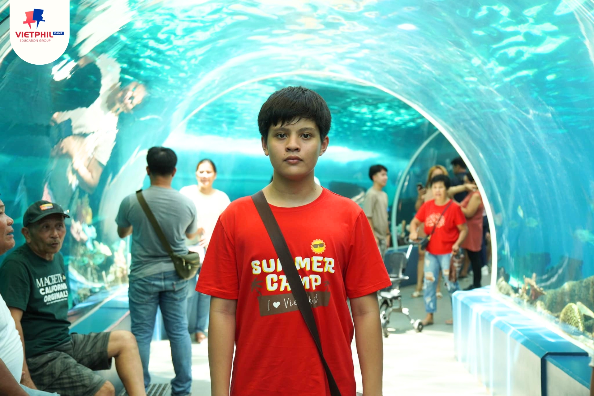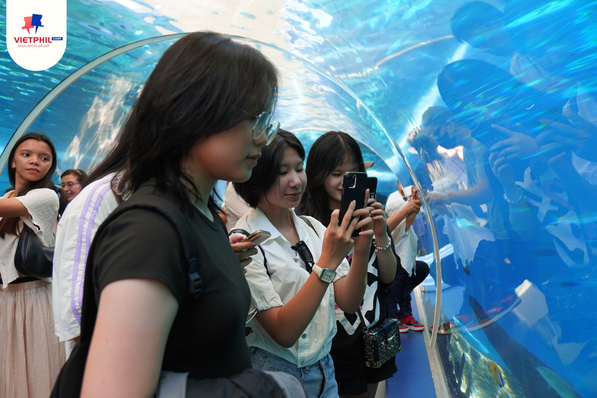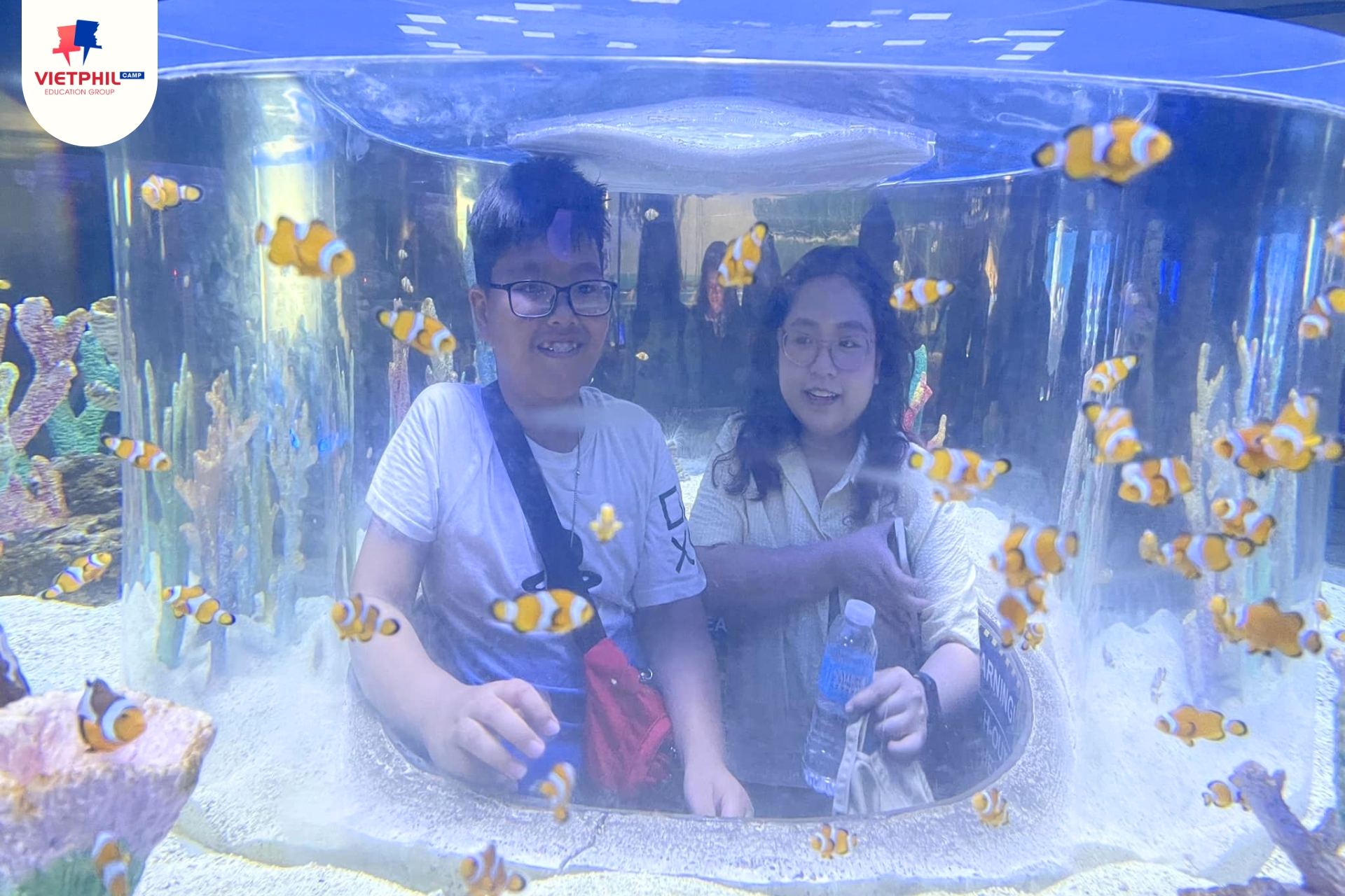 Các bạn nhỏ đáng yêu đều rất thích thú khám phá những điều mới mẻ, các loài cá, động vật mới. Nơi đây, các con được hòa mình vào thiên nhiên tìm hiểu về sinh vật đại dương lớn nhất tại Philippines! Đây là buổi dã ngoại trong chương trình được tổ chức bởi các thầy cô tại trường khi tham gia trại hè Philippines. Có các loài cá, san hô, và vô cùng các loài động vật biển rất đa dạng, mới lạ và độc hơn 1500 loài sinh vật biển.