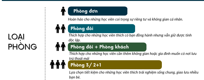 - Phương án tiết kiệm, tăng cơ hội giao lưu và kết bạn, phù hợp với học viên yêu thích môi trường năng động, sống chung nhiều trải nghiệm.