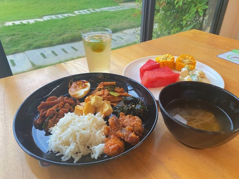 Bên cạnh các món chính, nhà trường chuẩn bị trái cây và các loại rau củ tươi như xà lách, dưa leo, bắp, củ sắn… giúp học viên có thêm lựa chọn về rau xanh và trái cây trong thực đơn hằng ngày, đảm bảo bổ sung đầy đủ chất xơ và vitamin cho học viên lưu trú dài ngày tại trường trong suốt hành trình du học Philippines.