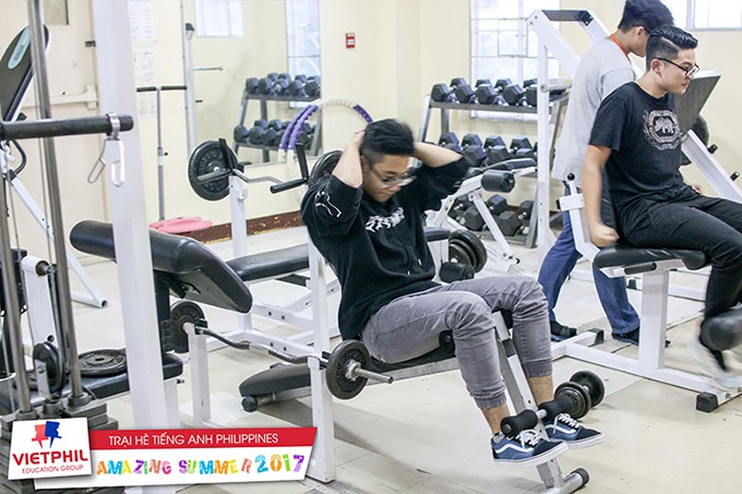 Đôi lúc các bạn học sinh còn đến phòng gym trong trường để tập nữa