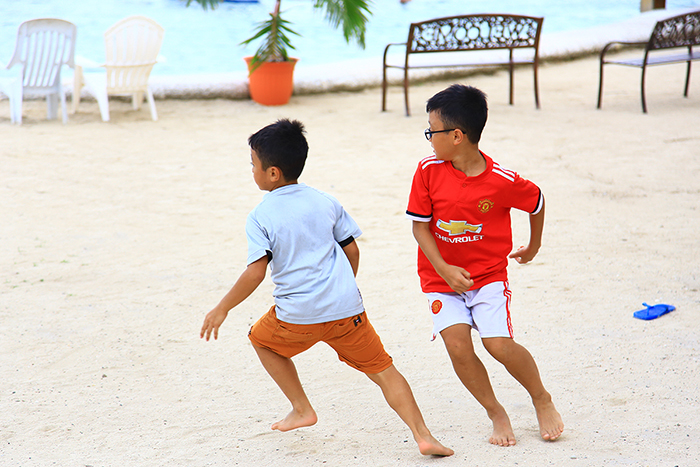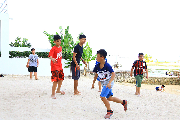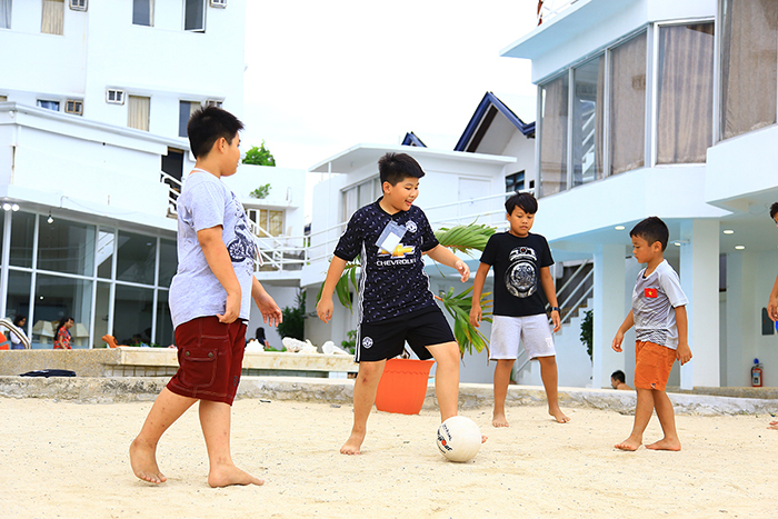 Mỗi con sẽ chọn cho mình những hoạt động riêng, các bạn nam có niềm đam mê với trái bóng cùng nhau vui đùa và thi đấu sân đá bay bên bờ biển Seafront xinh đẹp,