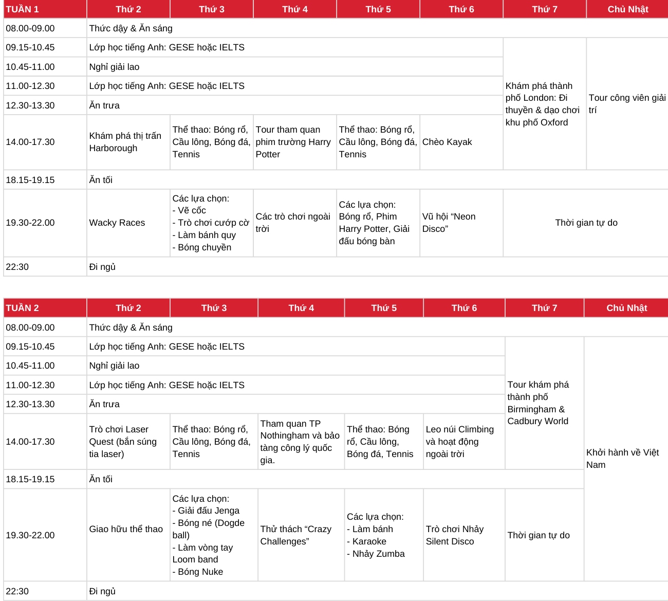 Một số điểm đến và hoạt động nổi bật tại trại hè Anh