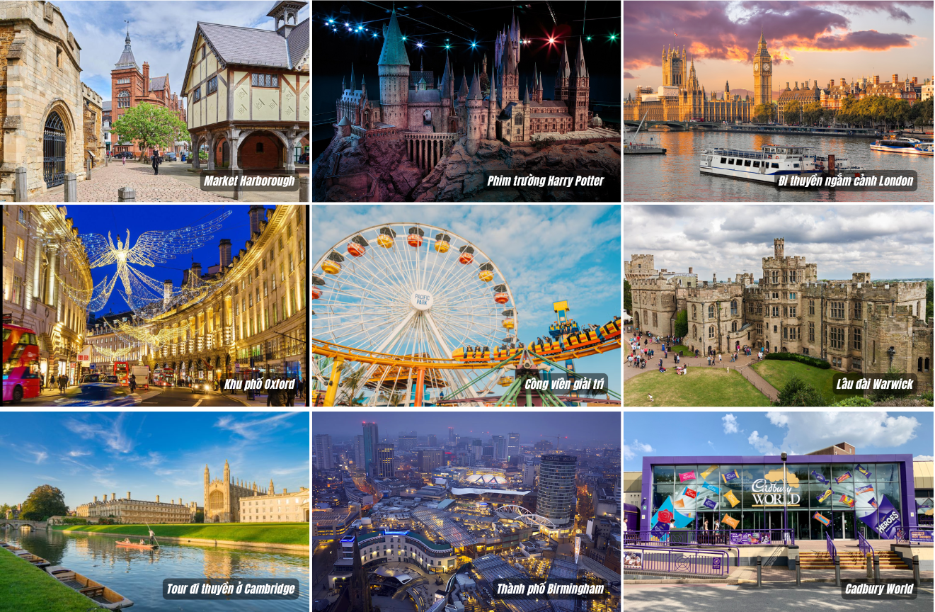 Học viên được tham quan các danh lam thắng cảnh, các địa danh lịch sử nổi tiếng của các thành phố, phim trường Harry Potter, nhà đại thi hào Shakespears ... giúp mở rộng kiến thức về văn hóa và lịch sử.