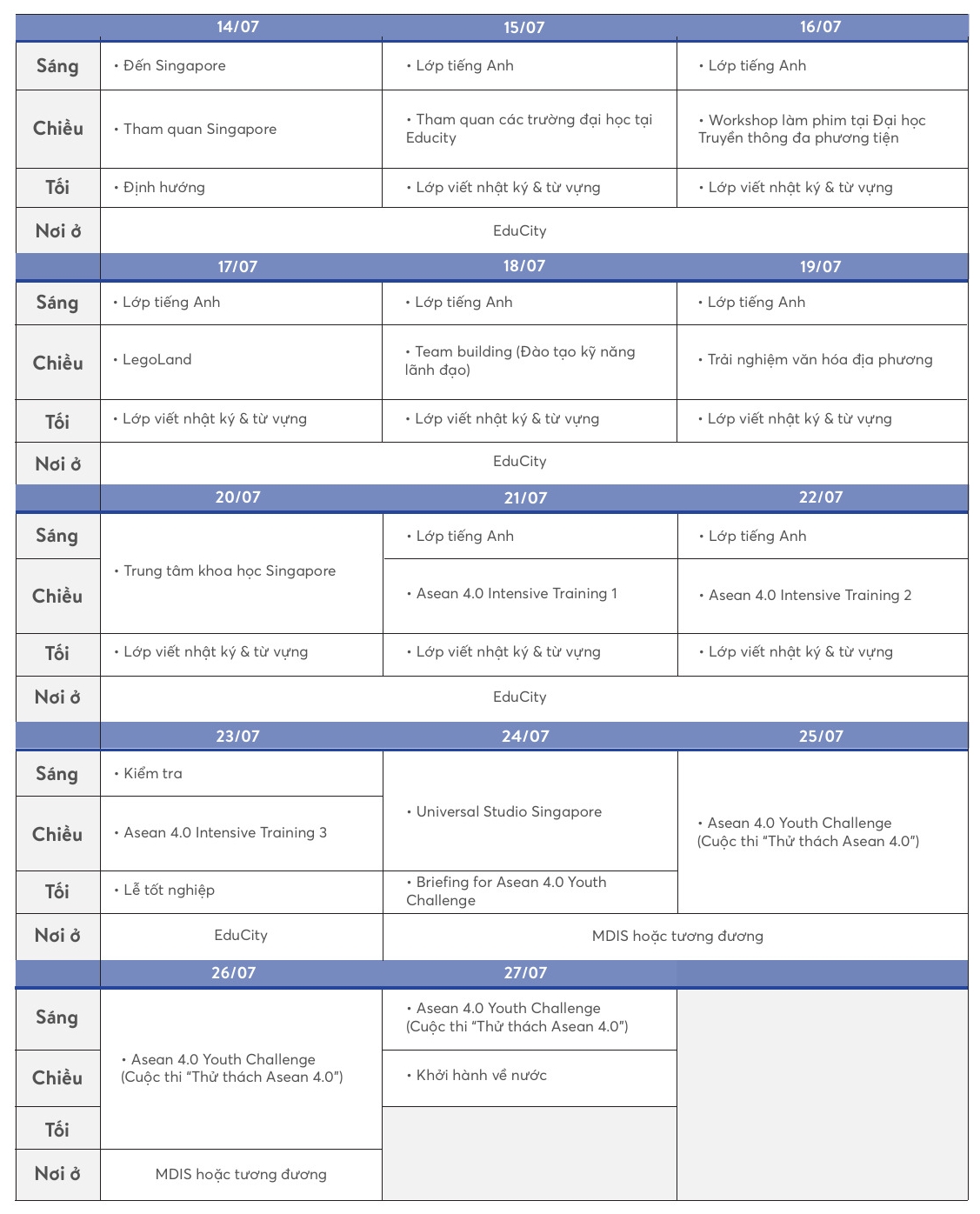 Lịch trình hoạt động dự kiến của Trại hè Tiếng Anh Và Công Nghệ ASEAN