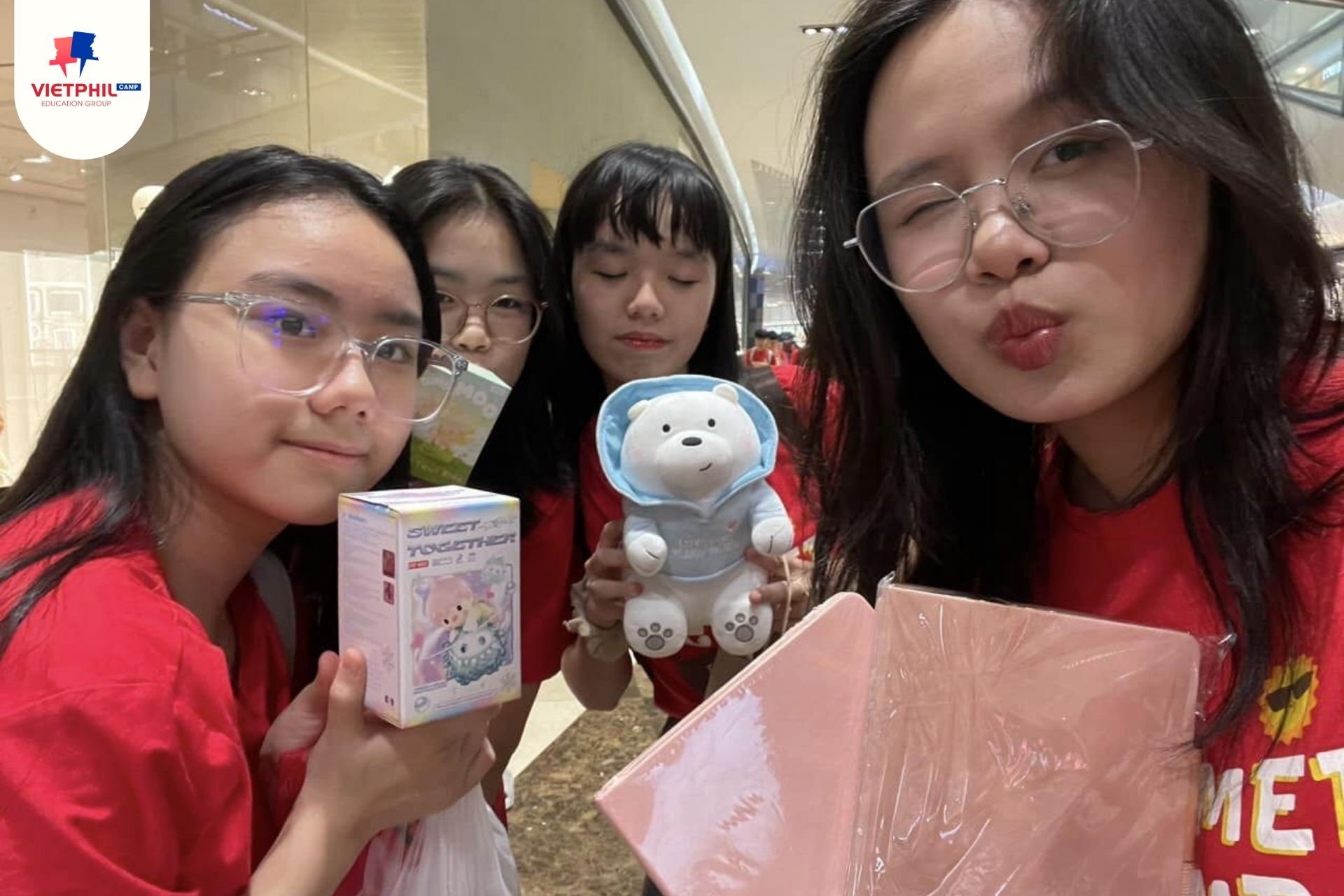 Sau khi kết thúc một ngày dài tham quan tại nhà máy và trung tâm thương mại, các bạn đều giữ một nụ cười luôn nở trên môi khi vừa được trải nghiệm và có thêm kỷ niệm với bạn bè cùng thầy cô giáo của mình trại hè.
