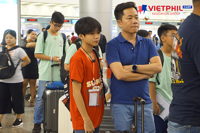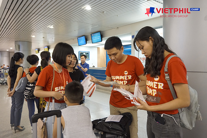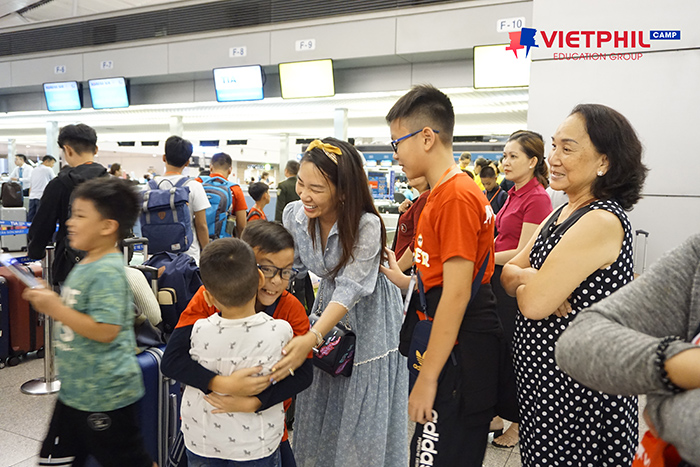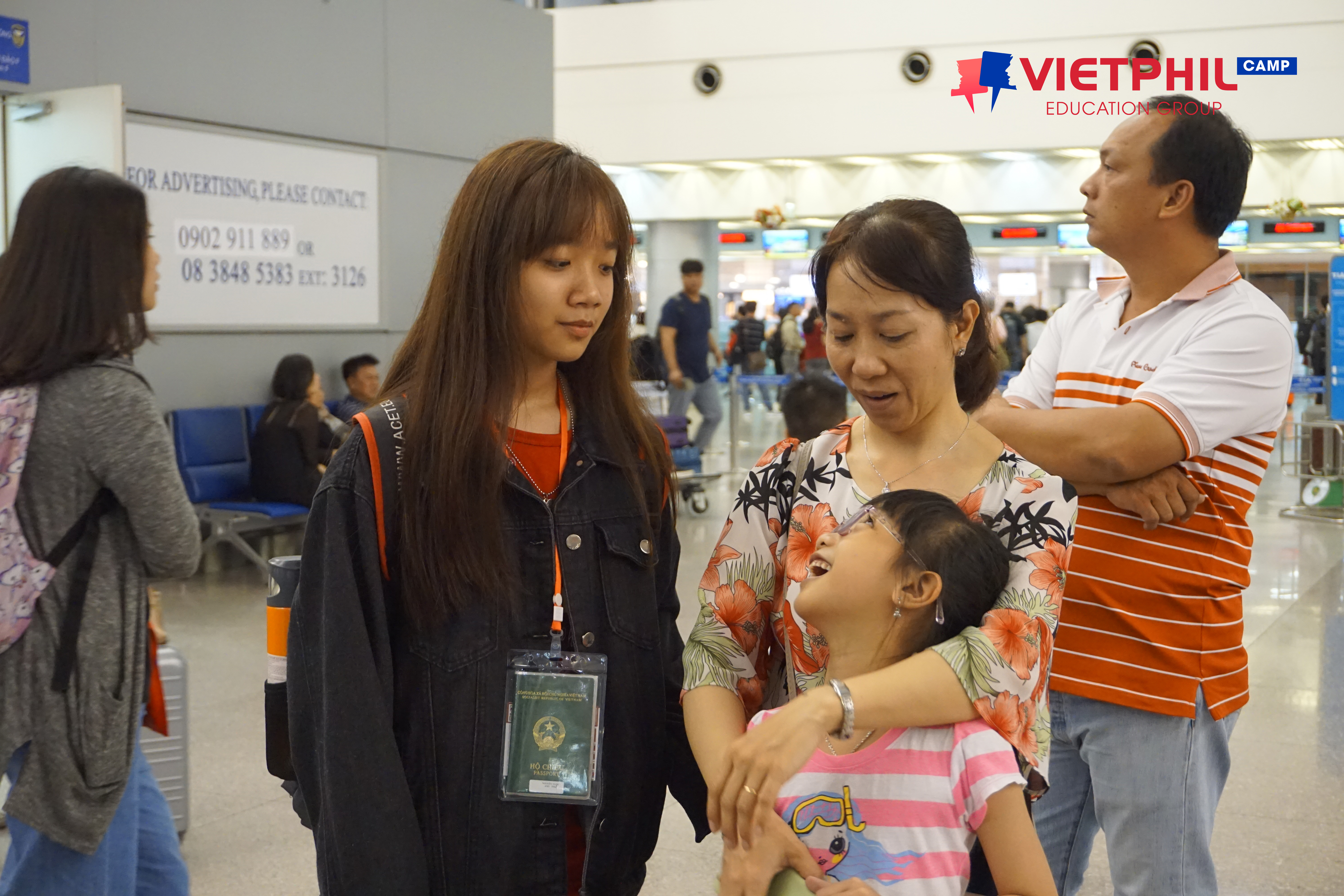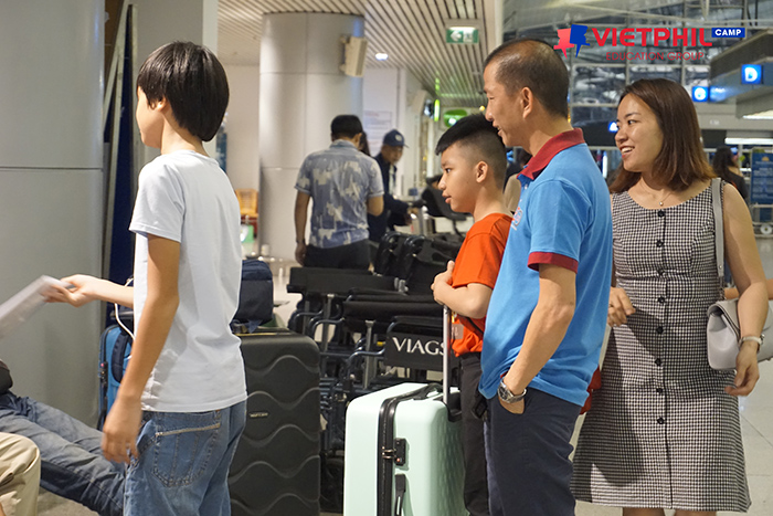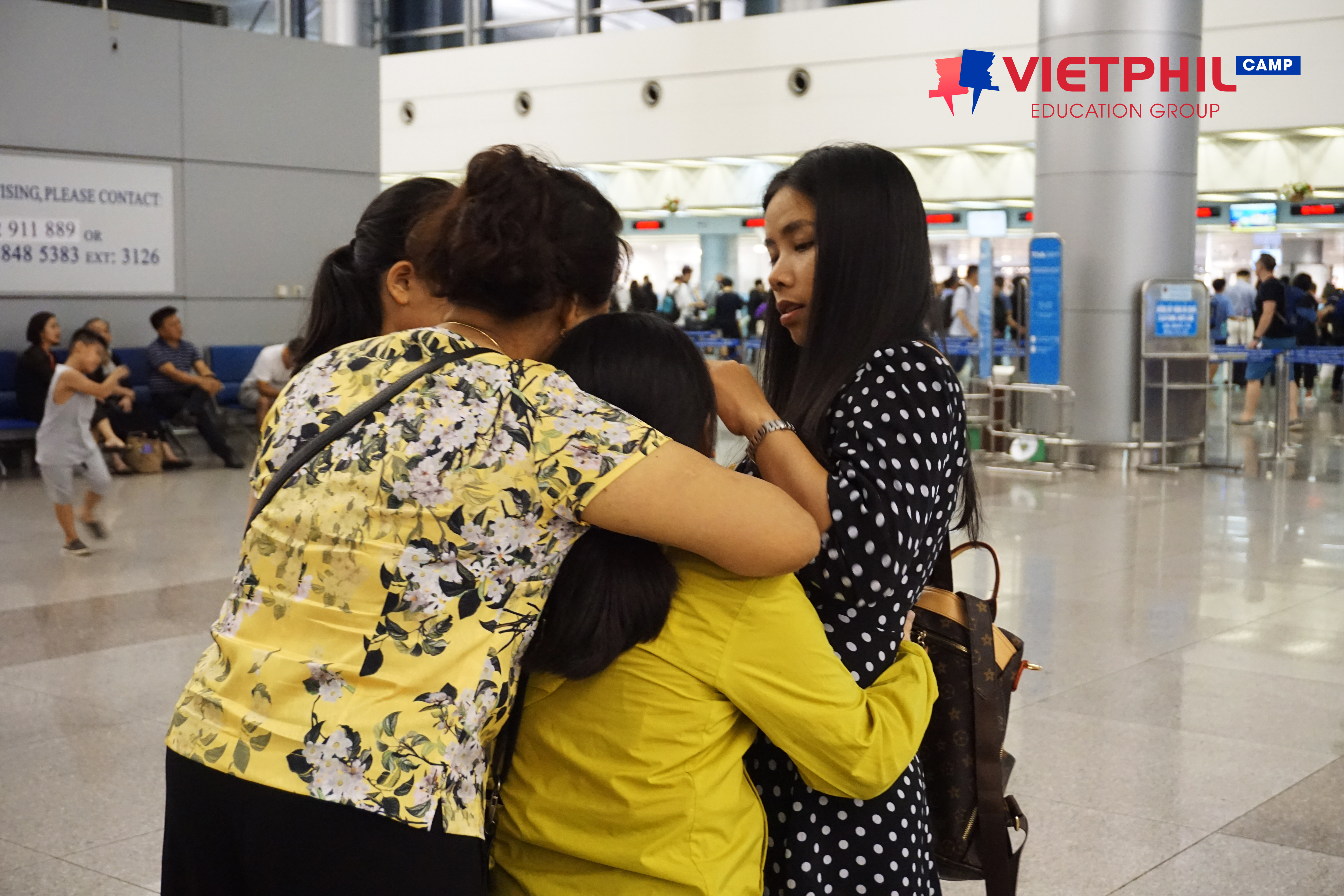 Tại đây, ba mẹ đã dành cho các con của mình những lời dặn dò, yêu thương cũng như rất nhiều lời khuyên bổ ích. Bên cạnh đó, ba mẹ kết hợp cùng đội ngũ VietPhil Camp chuẩn bị cho các con hoàn thành thủ tục giấy tờ hồ sơ để có thể checkin thành công và bước vào phòng chờ để làm các công tác xuất cảnh.