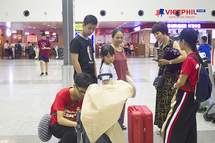 Ba mẹ và các con đã ra sân bay rất sớm từ đêm hôm trước, cùng đội ngũ VietPhil chuẩn bị hồ sơ bay cũng như sắp xếp hành lí, giúp các con làm quen với bạn bè và có thêm thời gian nghỉ ngơi trước khi lên máy bay với hành trình dài gần 4h đồng hồ.