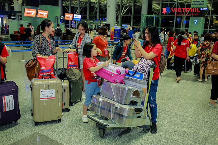 Trước một hành trình khá dài và hứa hẹn nhiều trải nghiệm, ba mẹ đã đưa các con ra sân bay, cùng đội ngũ cô chú VietPhil hỗ trợ các con trong việc chuẩn bị hành lí, giấy tờ cũng như tâm lí tốt nhất cho chuyến bay và các lịch trình sắp tới.