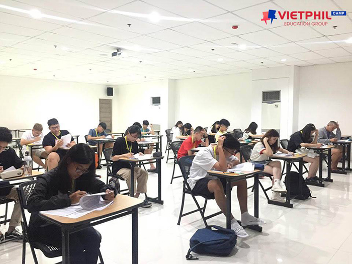Sau đó, các bạn được làm bài test đầu vào để được các thầy cô lựa chọn giáo trình và phương pháp phù hợp nhất với trình độ của các con. Điều này là yếu tố mấu chốt giúp các con có thể đạt được tiến bộ về khả năng tiếng Anh của mình trong suốt trại hè.