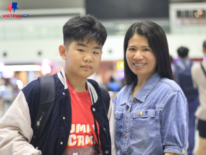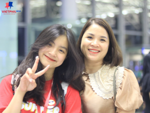 Bố mẹ và anh chị em trong gia đình đã ra sân bay từ rất sớm để cô chú VietPhil Camp hỗ trợ các con làm thủ tục trước chuyến bay cùng như hỗ trợ con kiểm tra và chuẩn bị lại hành lí, đồ đạc cũng như chụp lại những bức ảnh kỉ niệm cùng con trước chuyến đi.