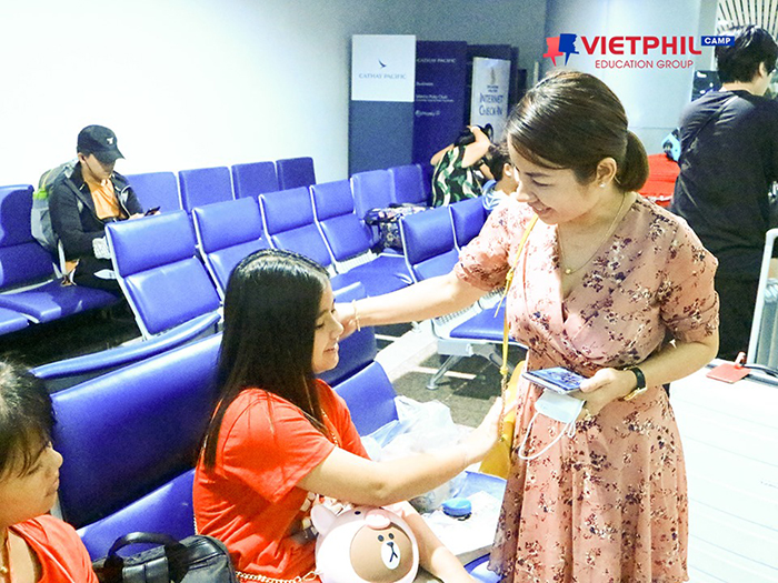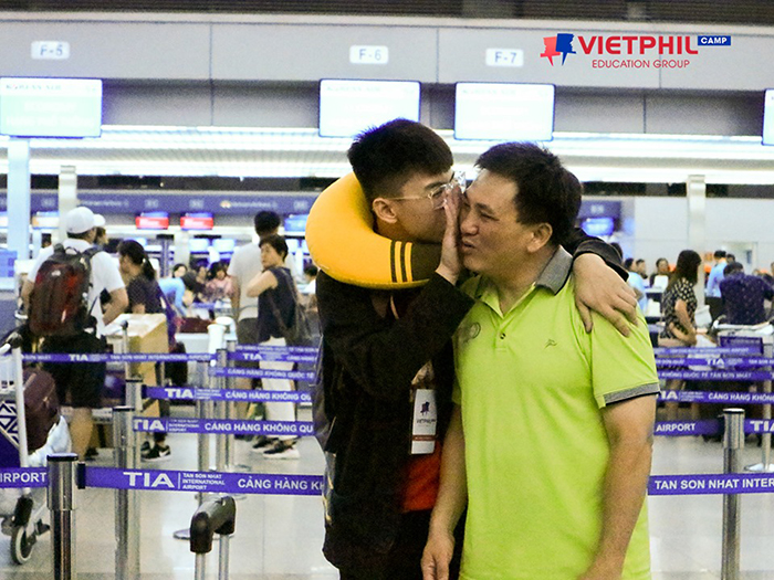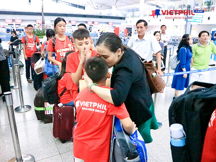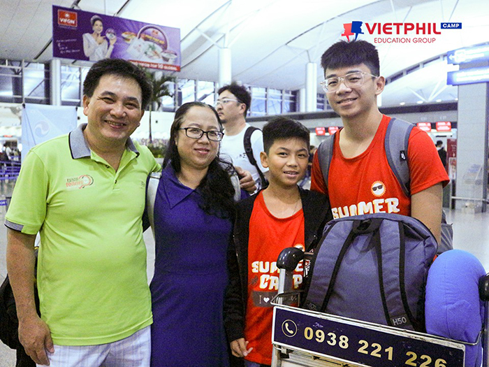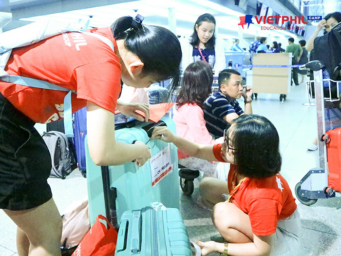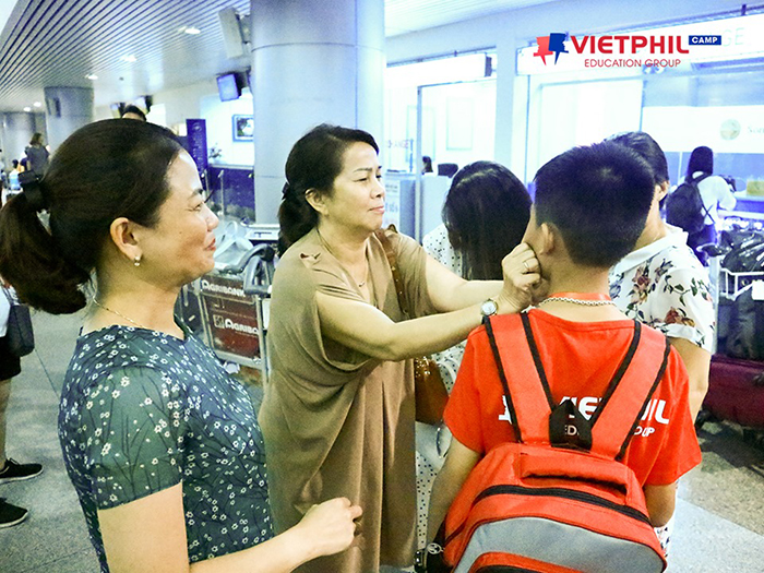 Trước hành trình dài, ba mẹ đã đưa các con ra sân bay, cùng cô chú VietPhil chuẩn bị và sắp xếp lại hành lí cũng như tâm sự dặn dò các con những điều cần lưu ý để có tâm lí tốt nhất cho chương trình trại hè kéo dài gần 1 tháng này.