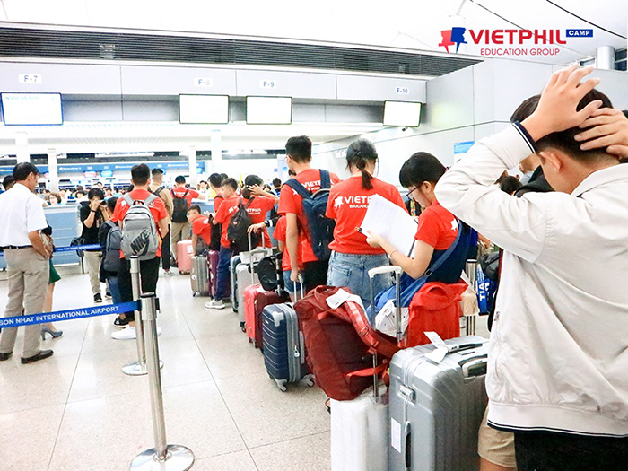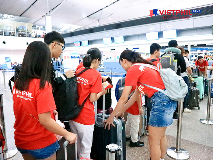 Sau khoảng thời gian tạm biệt bố mẹ và người thân, các con cùng nhau ổn định để checkin và di chuyển sang phòng chờ. Chuẩn bị chào đón hành trình ý nghĩa của mình tại Philippines cùng thầy cô tại trường và các cô chú quản lí VietPhil Camp.